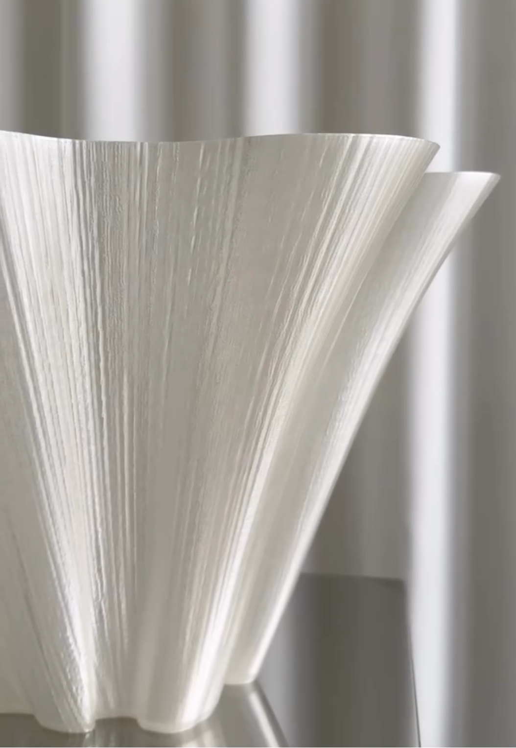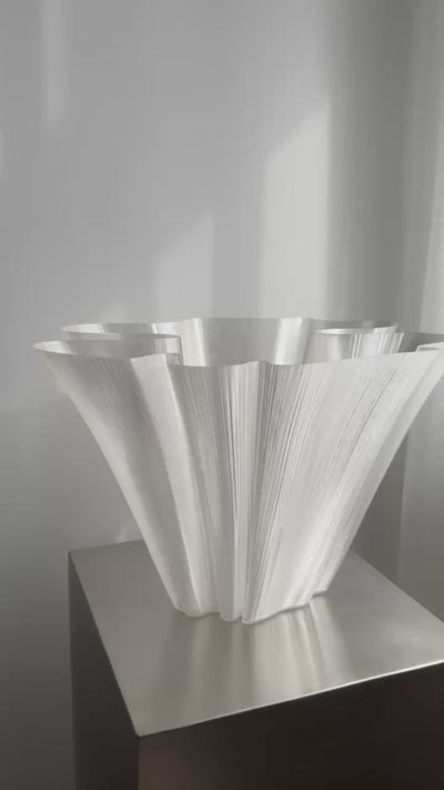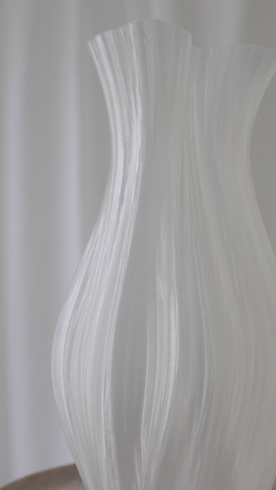The vases are made using advanced 3D printing technology, which allows us to create complex organic shapes that cannot be found in traditional vase production. It is a symbiosis of art and technology that will take your interior design to a whole new level. The objects are made of bioplastic, which makes them airy and easy to hold, while a graceful curve brings movement and energy to any room.