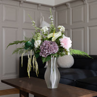 Disse kunstige tulipaner er omhyggeligt designet med sine fyldige, veldefinerede kronblade i en smuk blød nuance, som efterligner den ægte plantes tidløse skønhed. Uden behov for vanding eller pleje tilfører disse lilla tulipaner en vedvarende raffinement og en varm atmosfære til din indretning. Perfekt til at skabe et stilfuldt og luksuriøst udtryk i dit hjem eller på kontoret.