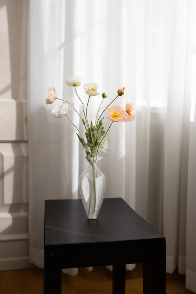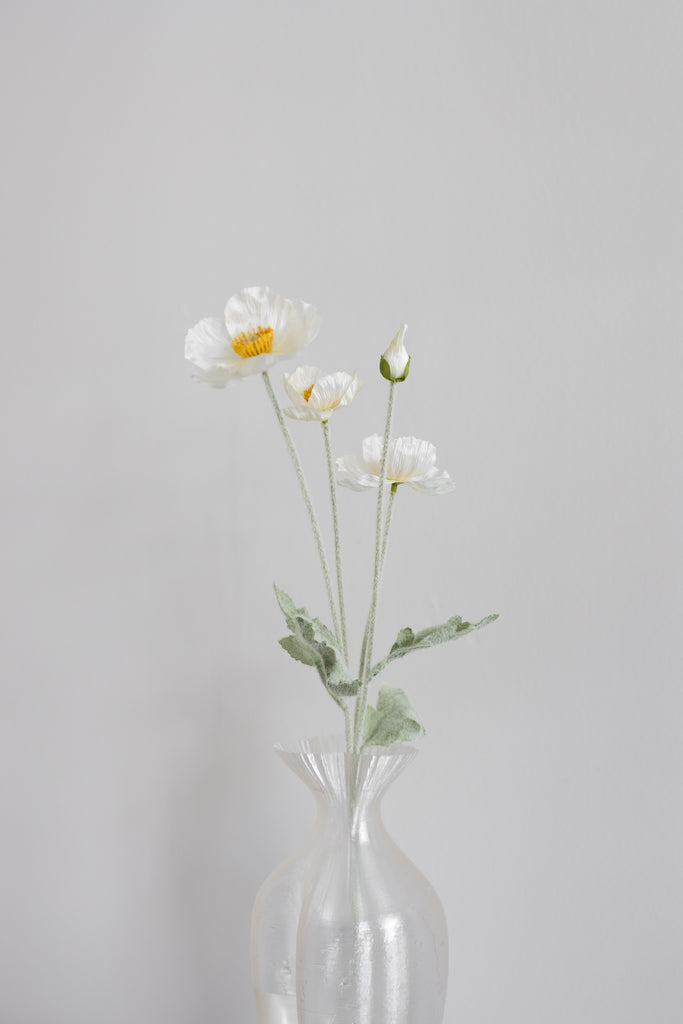 Vi præsenterer vores naturtro cremevalmue - en delikat og sofistikeret blomst, der tilfører et strejf af raffineret skønhed til ethvert rum.