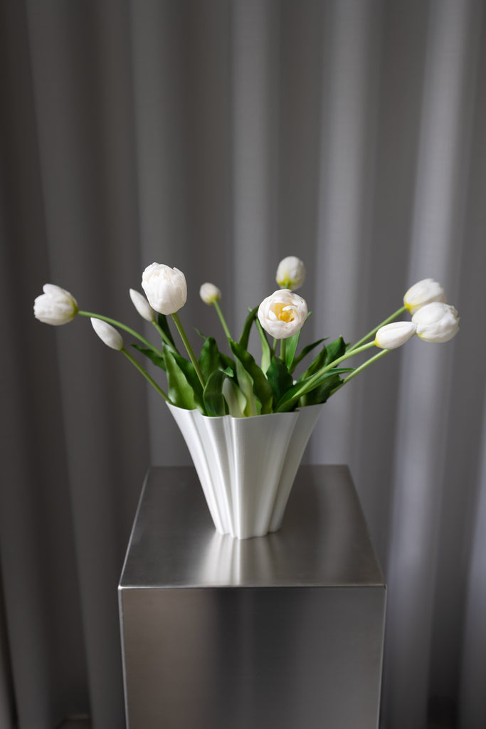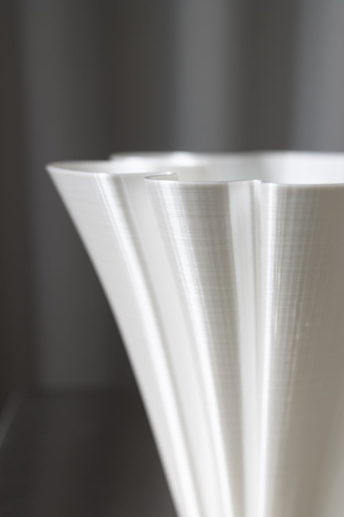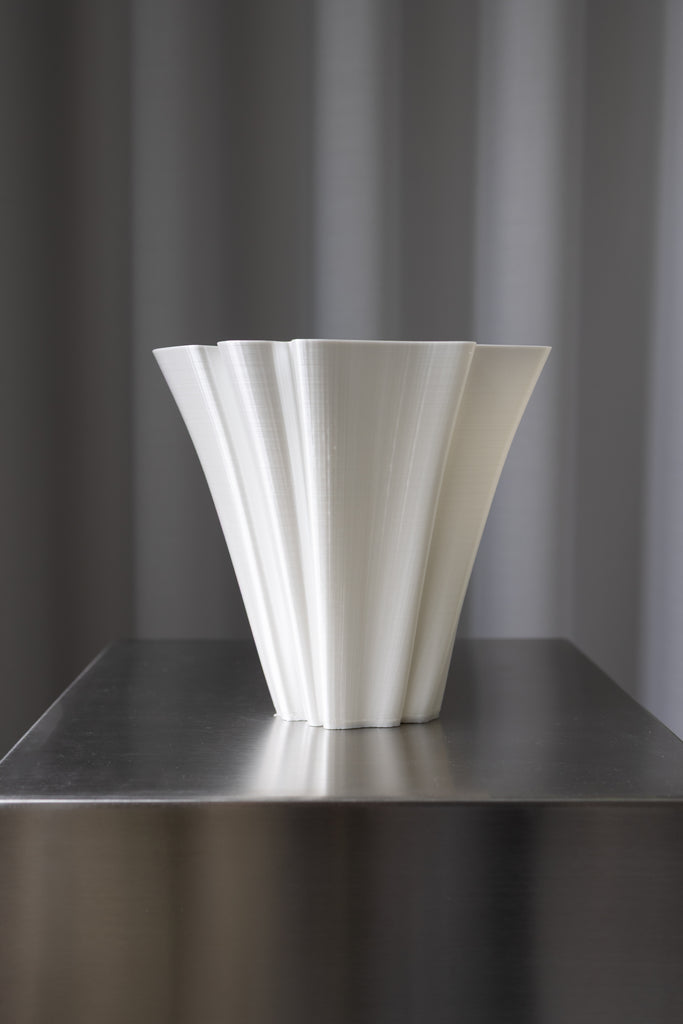 Dette objekt er lavet ved hjælp af avanceret 3D-printteknologi, som giver os mulighed for at skabe komplekse organiske former, der ikke findes i traditionel vaseproduktion. Det er en symbiose af kunst og teknologi, der vil tage din boligindretning til et helt nyt niveau.