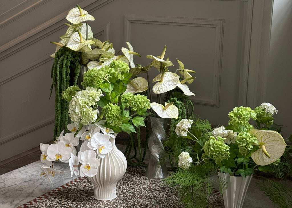 Samarbejdet udspringer af en fælles kærlighed til form, materialer og atmosfære – hvilket resulterer i en fuld dekoration af BLOOM OBJECTS’ blomster og vaser i dialog med Nobis’ klassiske arkitektur og nordiske elegance.