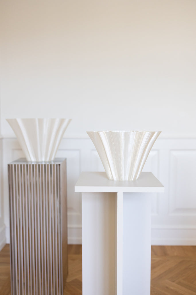 Coral is airy and feels light to hold, while a graceful curve brings movement and energy to any space. It is made of bioplastic derived from corn or sugarcane, so this object is both lightweight & delicate.